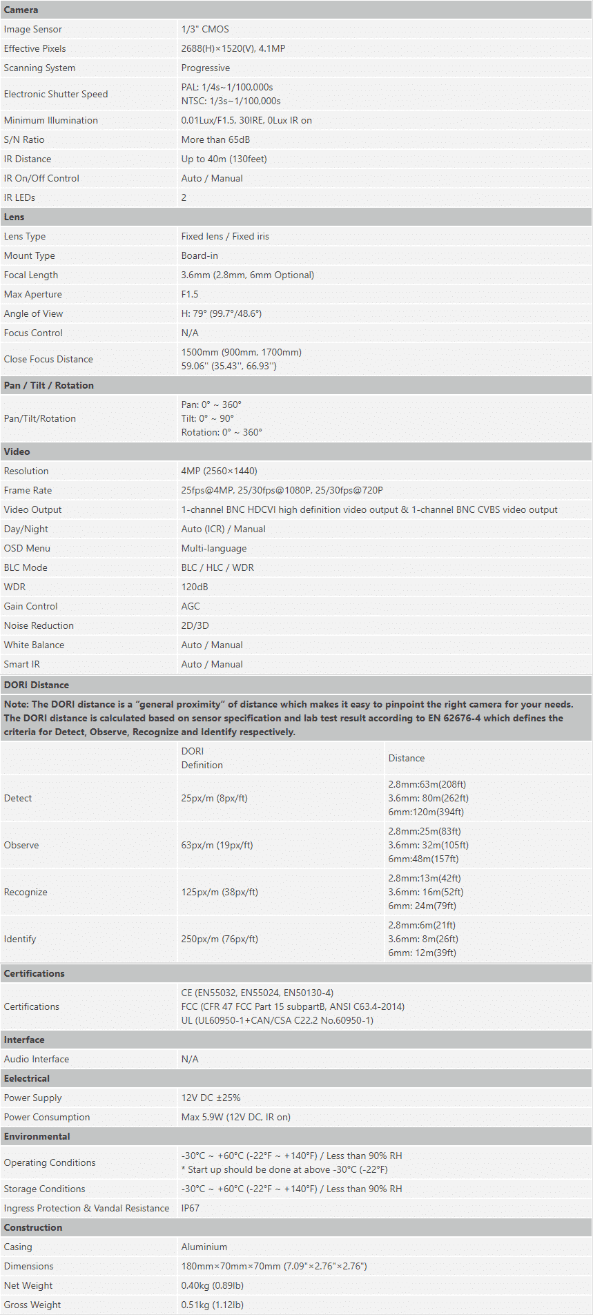 كاميرا مراقبة داخلية HD شبكية بدقة عالية 4MP و رؤية ليلية حتي 30 متر وتعمل بخاصية 3D DNR & DWDR & BLC ودرجة حمايه عالية IP67