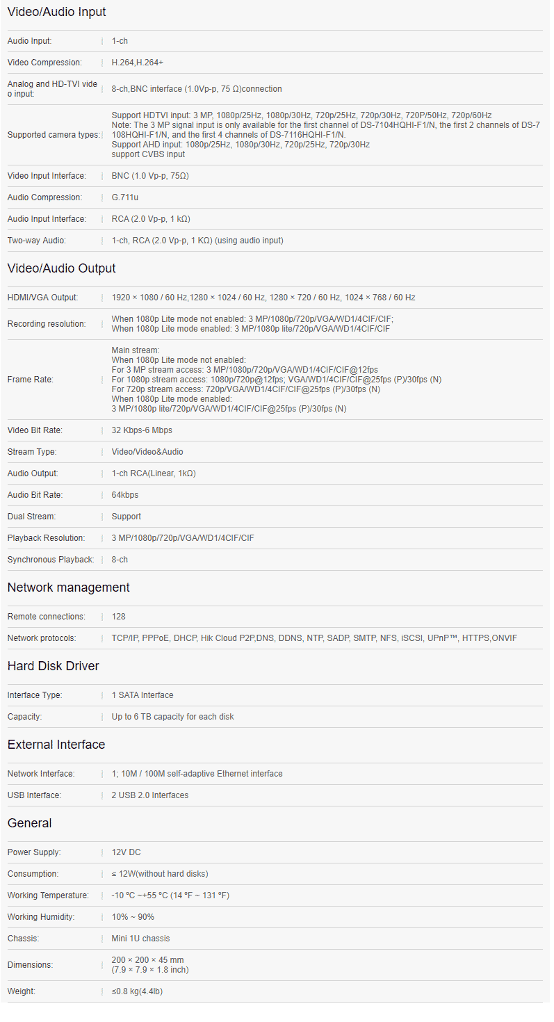 جهاز تسجيل DVR DS-7108HQHI-F1/N