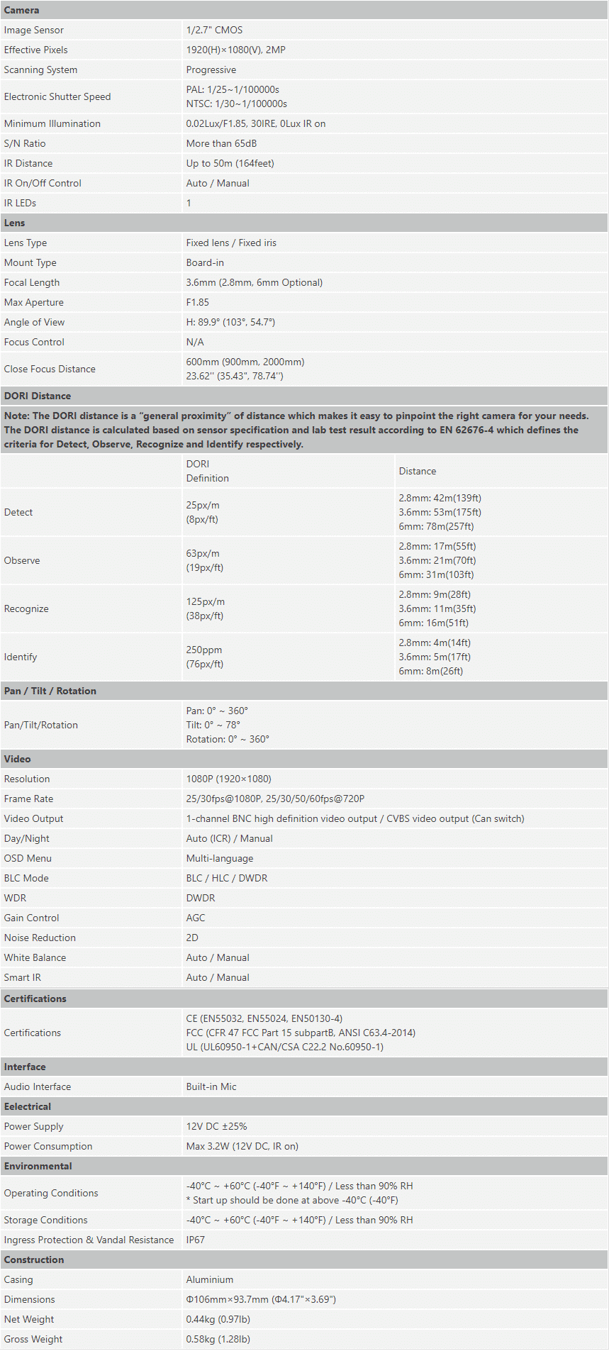 كاميرا مراقبة داخلية HD شبكية بدقة عالية 2MP و رؤية ليلية حتي 30 متر وتعمل بخاصية 3D DNR & DWDR & BLC ودرجة حمايه عالية IP55