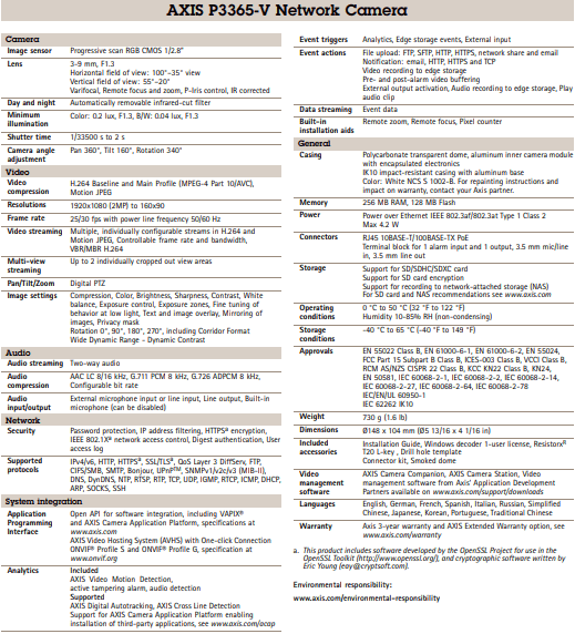 كاميرا مراقبة داخلية AXIS المنتج الاشهر فى مصر والشرق الاوسط المنتج الوحيد الامريكى المنتج لايحتاج لوصف من الشهرة البالغة الكاميرا تاتى بعدسة صورة 2MP وتتميز بجودة صورة عالية 1080p فعلى قطر العدسة 2.8mm لتضمن زوية صورة حتى 80 ْ الكاميرا تعمل على تيار كهربائى POE الكاميرا لا تتحمل العوامل الجوية