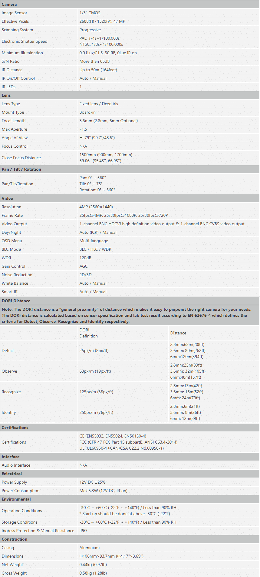 كاميرا مراقبة داخلية HD شبكية بدقة عالية 4MP و رؤية ليلية حتي 30 متر وتعمل بخاصية 3D DNR & DWDR & BLC ودرجة حمايه عالية IP55